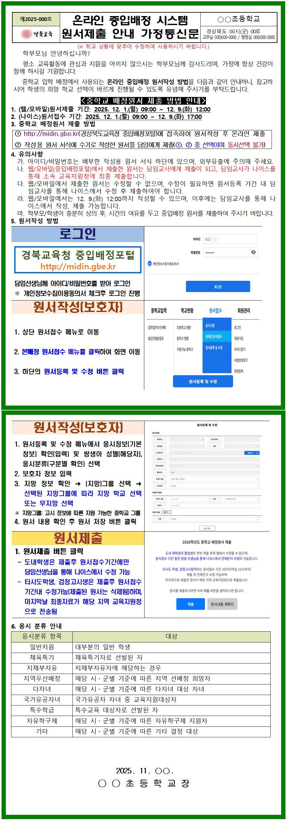 중입전형일정표